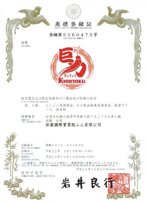 與一般台灣的自有品牌不同的是,巨力機油是由台灣炬霖國際實業股份有限公司與日本Lube Solutions Ltd. 所共同成立的跨國合資品牌,在台日兩地都擁有完整的登記証書;品牌形像為日本漢字的『 巨力 』,讀音為『 KYORYOKU 』,意即『 巨大的力量 』。