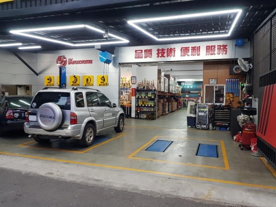我們是巨力機油附設的保修廠,除了實驗室的數字,我們更想知道產品在車輛上的實際反應,為了實現這樣的夢想,於是我們開了一間保修廠,並添加了許多專業設備:3D四輪定位機、輪胎平衡機、煞車盤研磨機、汽車診斷電腦、汽車空調管路清洗機、全智能自動變速箱清洗交換機、煞車油智能交換機、冷卻系統清洗交換機…等,讓每台車有更全方位的維護。店長表示:輪胎可以做到外傾角3度,都可以讓輪胎磨耗平均,這就是四輪"神"定位的由來!