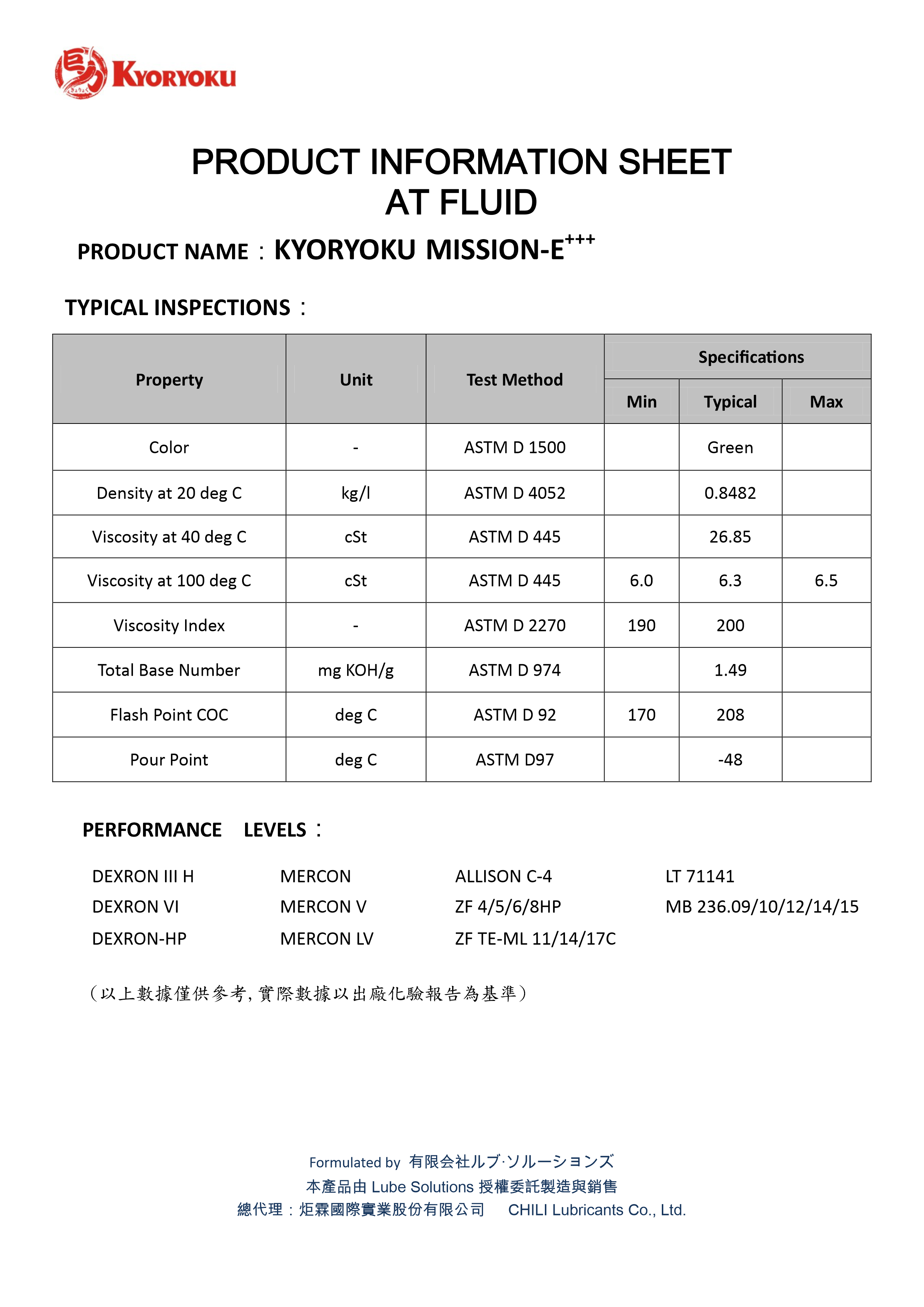 ♦黏度指數高達 200 以上,能有效降低變速箱過熱