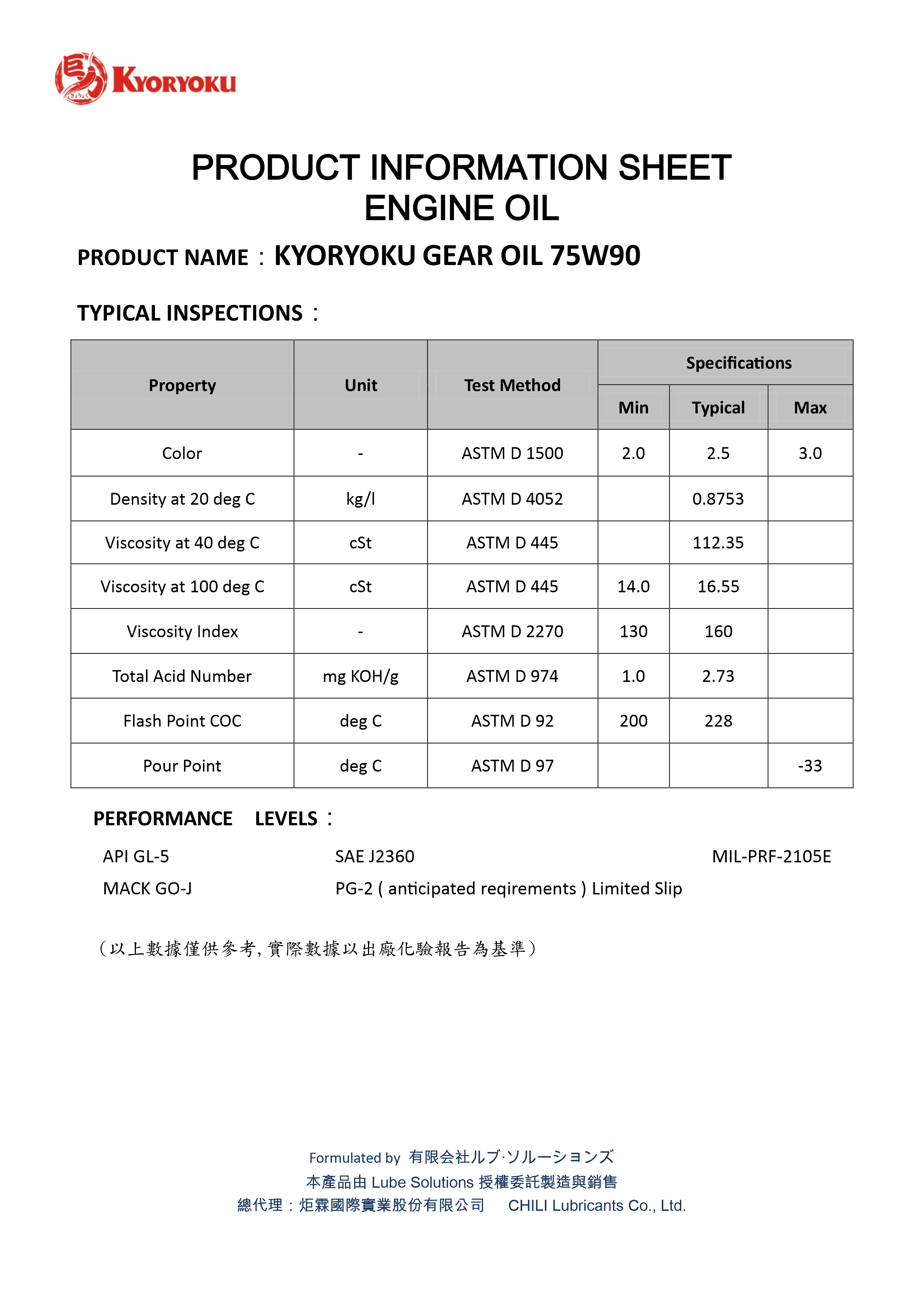 75W-90 齒輪油